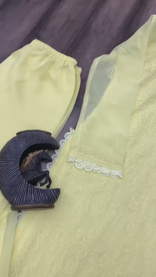 Light Yellow New Trend Chikankari special Ethnic Set
