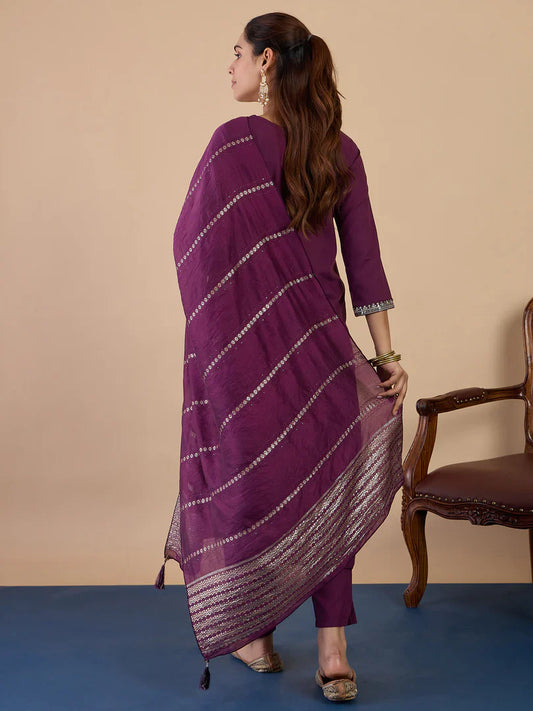 Nyra Purple Women’s Traditional Kurta Pant Set with Dupatta