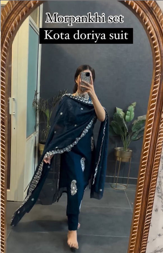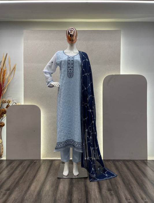 Elegant Heavy Suit Set with Hand Embroidery and Lace Dupatta
