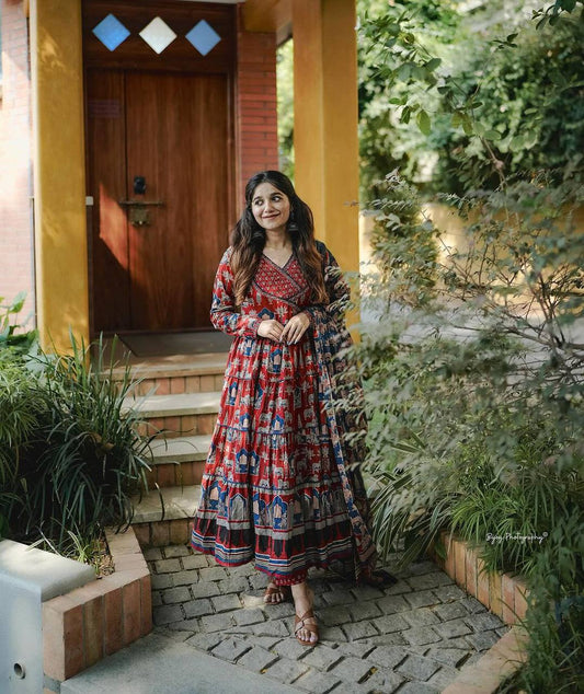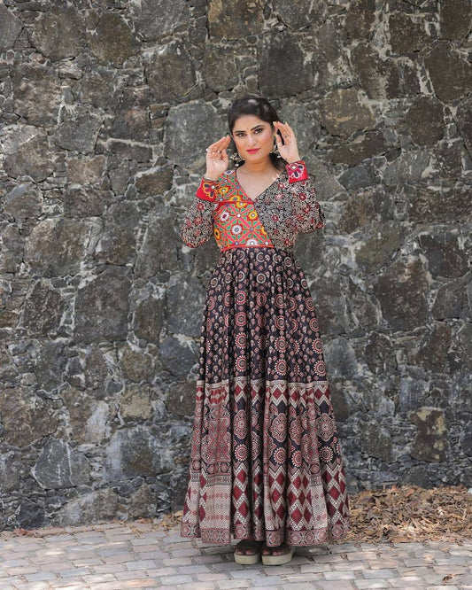 New Designer Navratri Special Rayon Printed With Mirror Work Gown