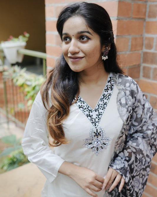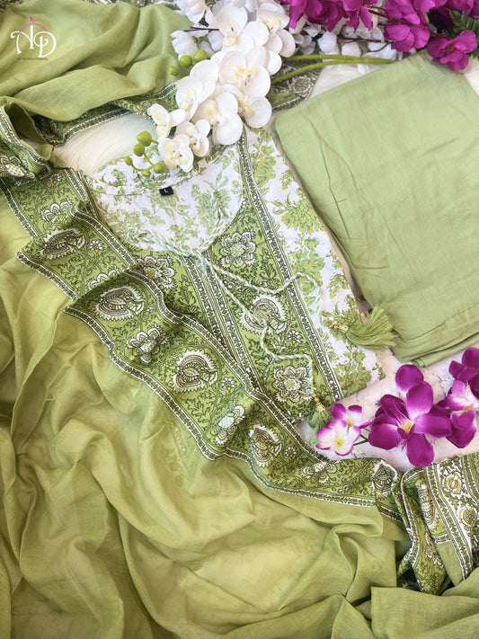 Elegant Muslin Alia Cut Suit Set with Hand Embroidery