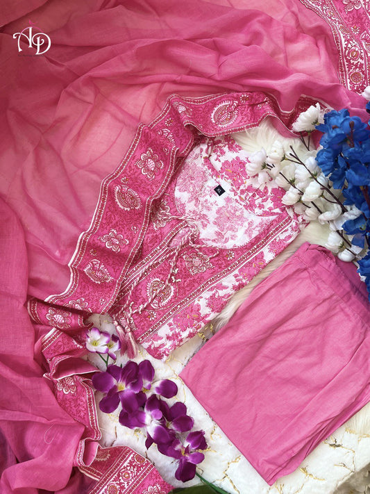 Pink Hand-Embroidered Heavy Anarkali Suit Set