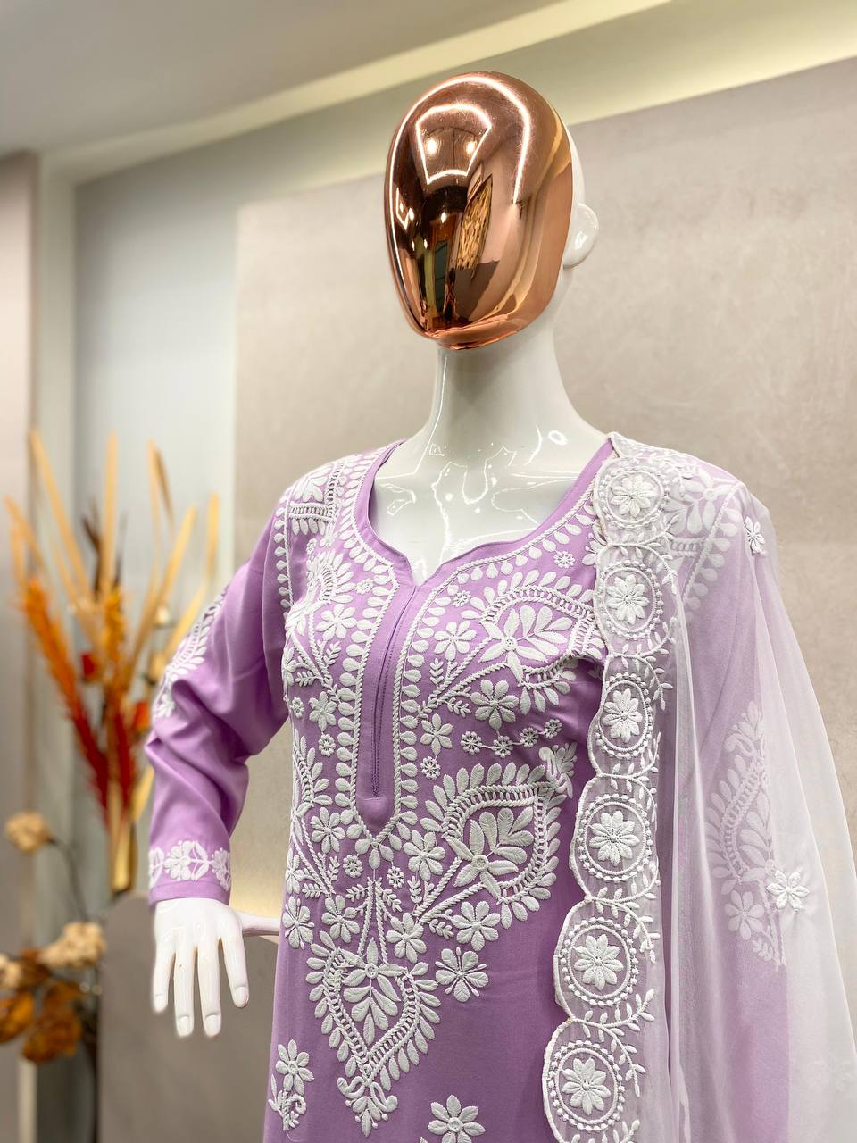 The Plazzo, crafted from the same high-quality rayon fabric as the Kurta, ensures a seamless blend of style and comfort. Its free size design offers flexibility and ease of wear, catering to various body types effortlessly.