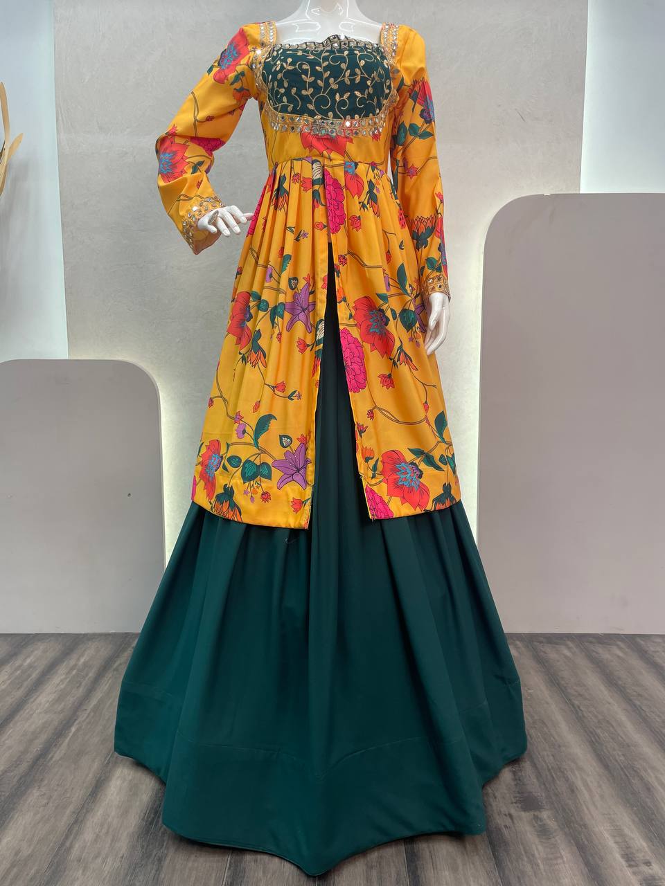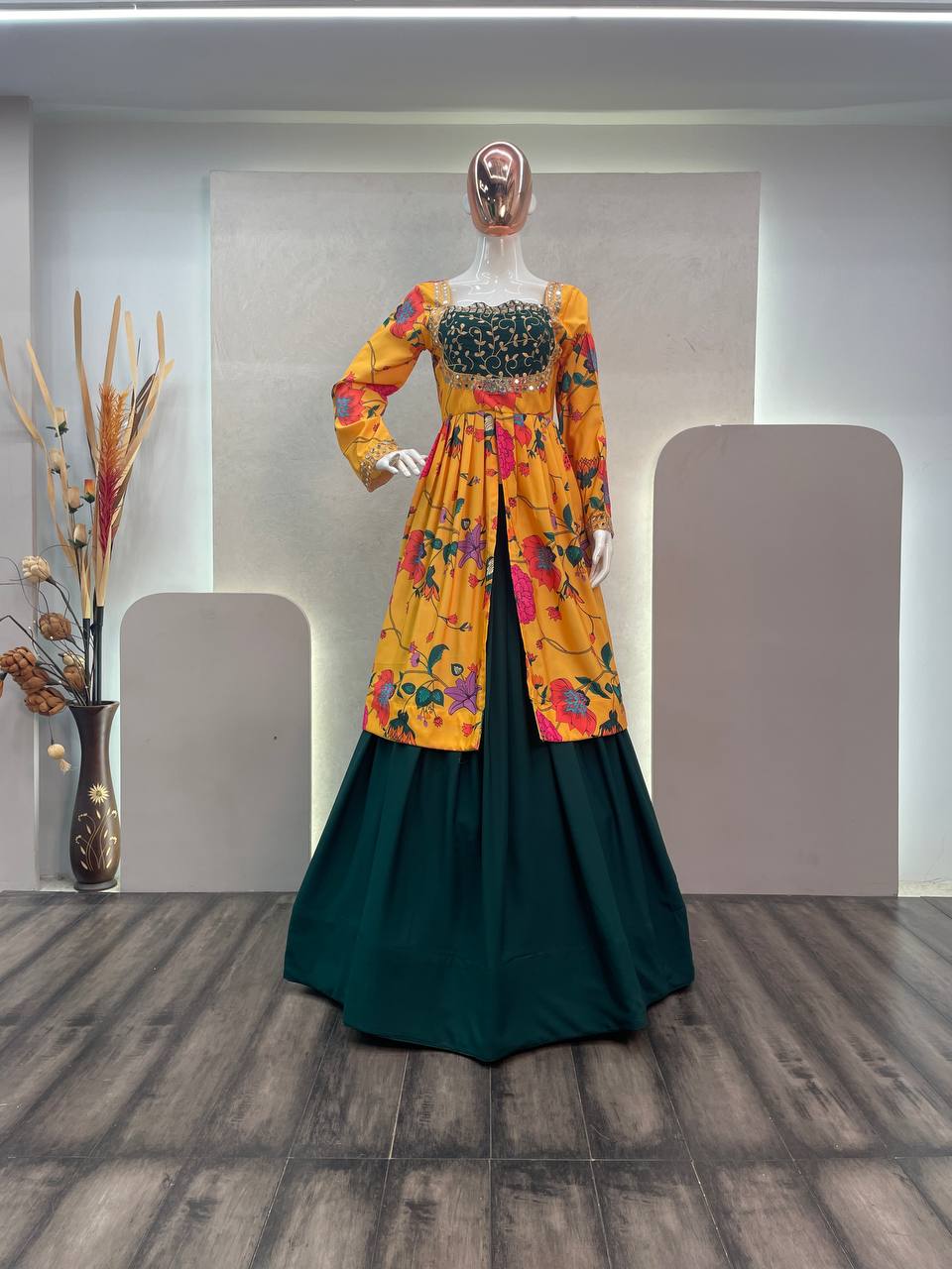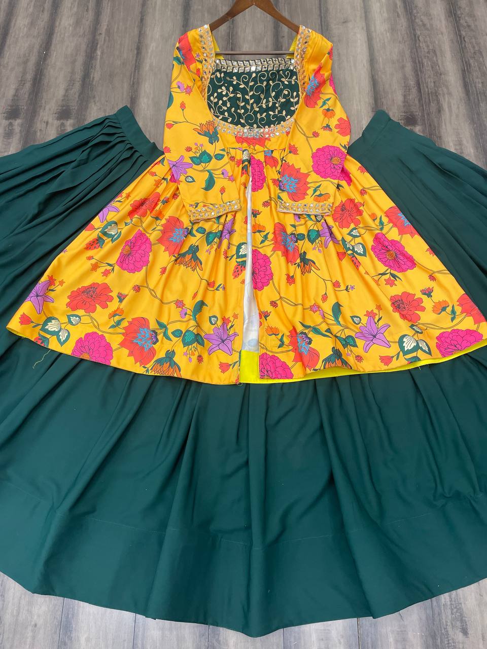Navratri Wear Beutique Styles Rayon Printed Top With Full Flair Lehenga