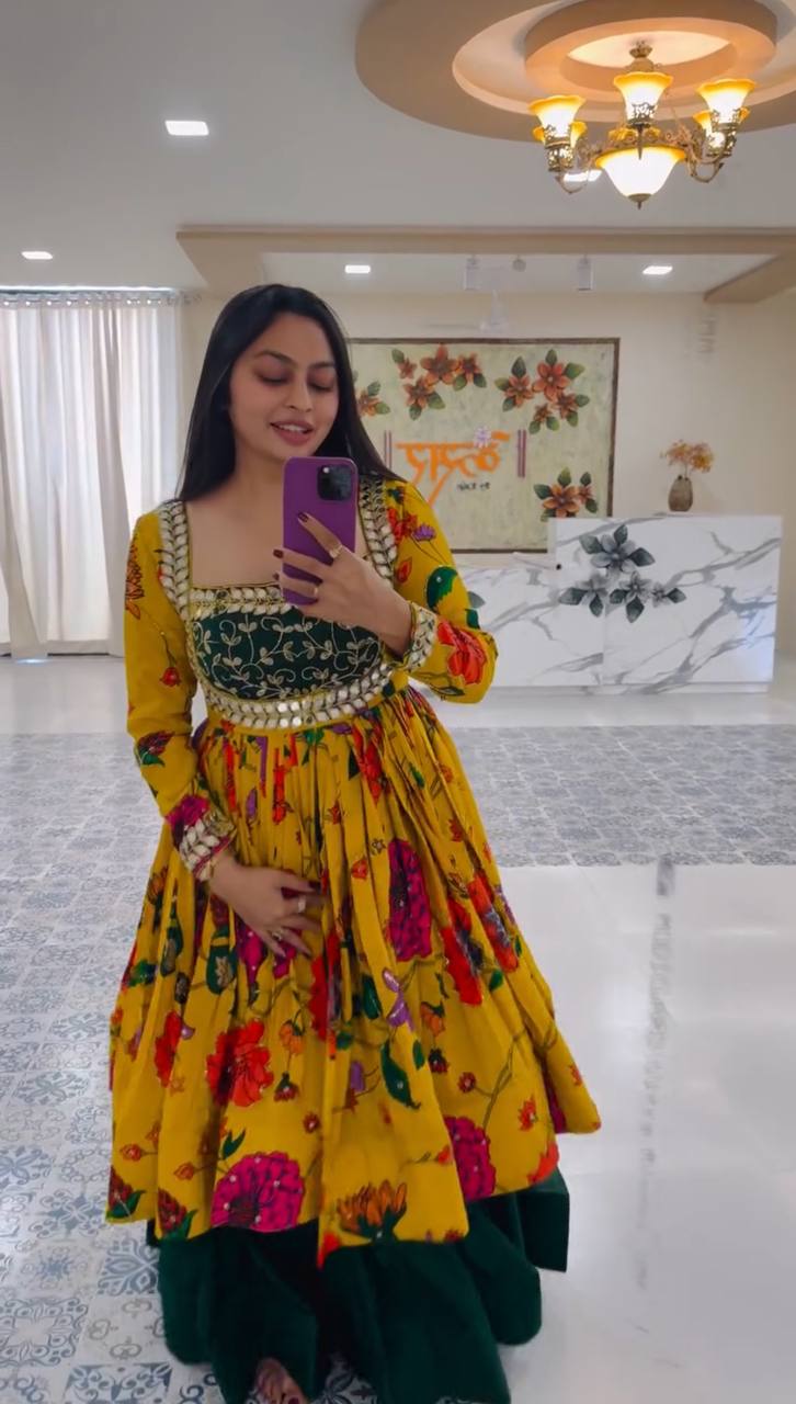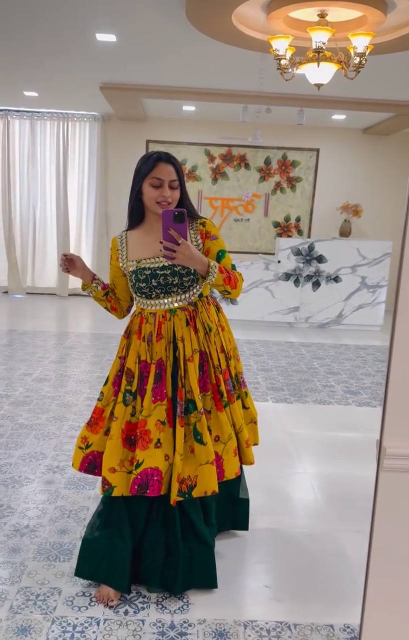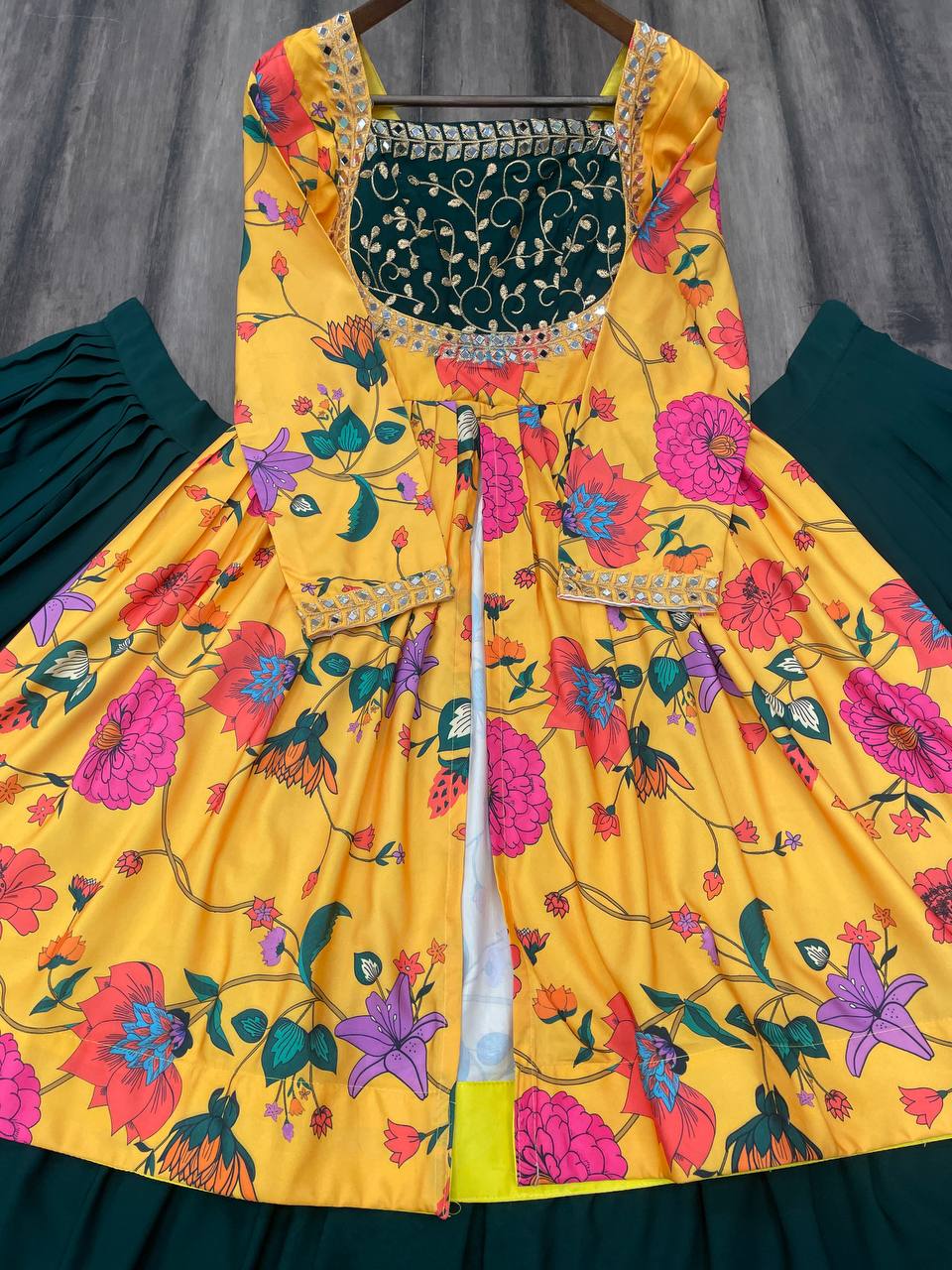 Navratri Wear Beutique Styles Rayon Printed Top With Full Flair Lehenga
